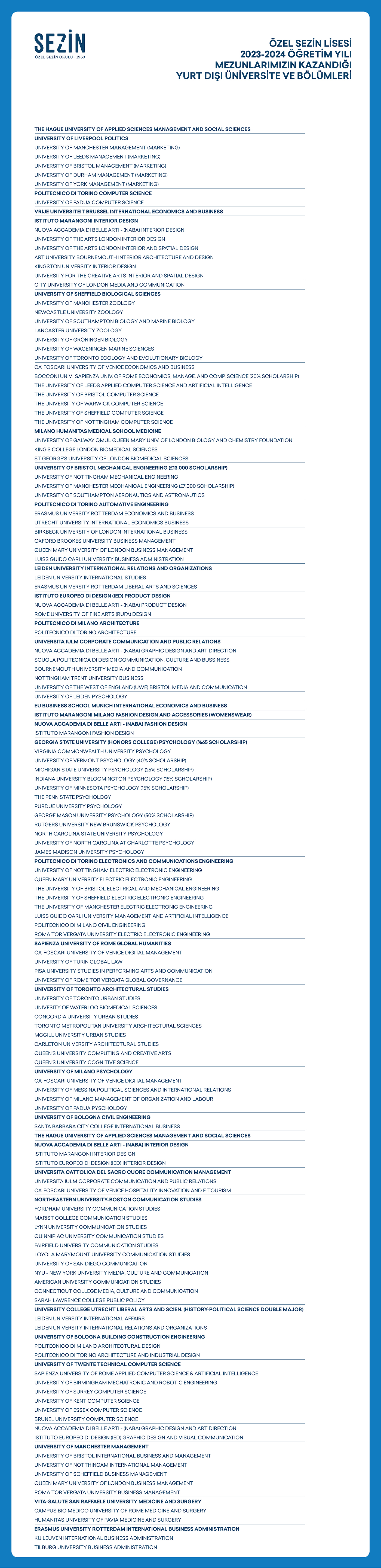 Economics, Management and Computer Science (%20 Scholarship) |