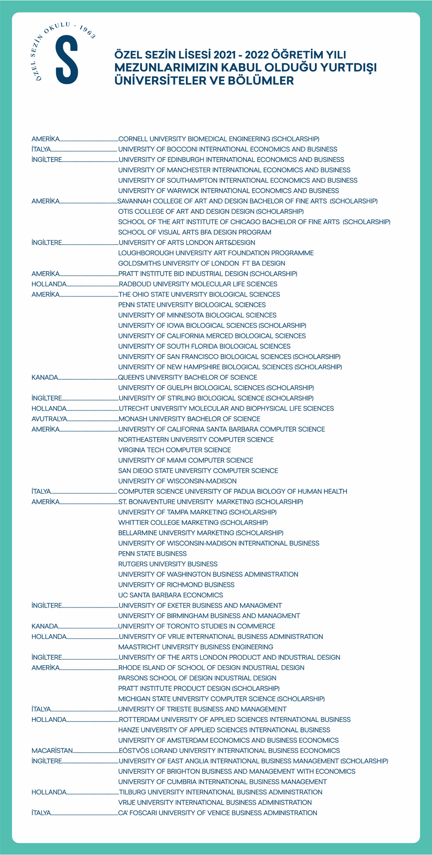 Economics, Management and Computer Science (%20 Scholarship) |