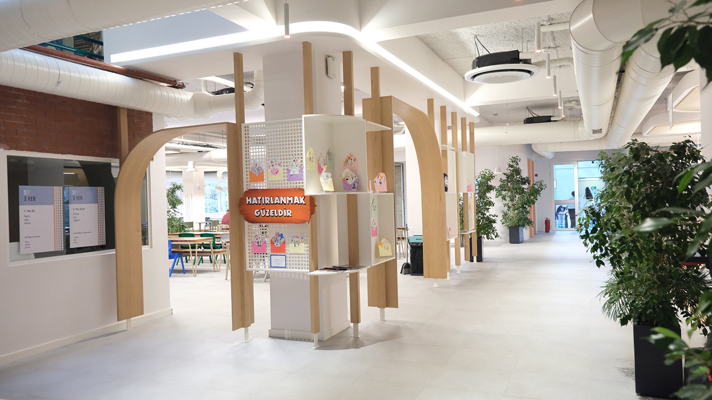 İletişim, takım çalışması, esneklik, şeffaflık, gülümseme ve akustik kavramları etrafında şekillenen Açık Çatı ile tüm paydaşların hayatına dokunan çok yönlü bir alan yaratmayı amaçladık. Araştırma süreci, Şubat 2014’te öğretmenlerimiz ve idarecilerimizin ATÖLYE ile gerçekleştirdiği tasarım odaklı düşünme oturumuyla başladı. Bu oturumda esnek kullanımlı bir etkinlik alanı, Makerlab aracılığıyla uygulamalı öğrenime olan gereksinim, geniş ve açık çalışma alanları, veliler ve öğretmenler için etkileşim bölgelerine duyulan ihtiyaç gibi çeşitli içgörüler ortaya çıktı.